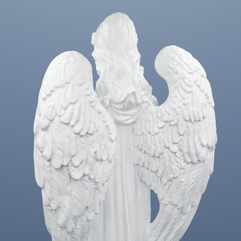 Скульптуры на могилы изготавливаются из литьевого мрамора, представляющего собой смесь алебастра, мела и некоторых других ингредиентов с натуральной мраморной крошкой. Получаемый таким образом материал характеризуется следующими достоинствами: